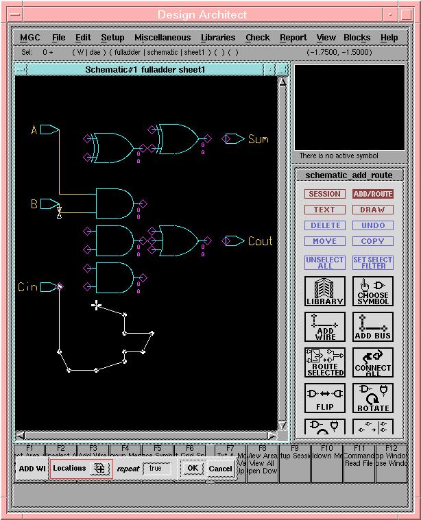 Σημείωση: Η standard cell βιβλιοθήκη με φυσικό σχέδιο (layout) διαθέσιμο για auto placing/routing είναι η cmosn_lib. Για να χρησιμοποιήσετε κάποιο εξάρτημα από τη βιβλιοθήκη, τυπώστε $cmosn_dmgr.