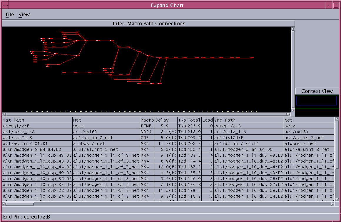 Μπορούμε να δούμε από αυτό μία worst case delay 223.9 ns από το IR στο CCREG. Αν θέλουμε περισσότερες λεπτομέρειες, μπορούμε να επιλέξουμε την διαδρομή (path) και να χρησιμοποιήσουμε τις επιλογές Expand -> Chart ή Expand Options. Το γραφικό μπορεί να γίνει zoom in ή zoom out , να δούμε τους τύπους μακροεντολών Actel (Actel macro types) καθώς και κείμενα με λεπτομέρειες που αφορούν το φόρτωμα (loading), την καθυστέρηση (delay) κλπ.