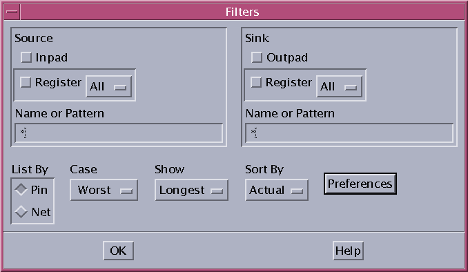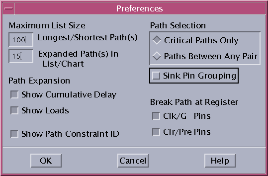Μπορούμε να ορίσουμε από τι sources (πηγές) και σε ποιες destinations (κατευθύνσεις) το εργαλείο πρέπει να χρησιμοποιήσει στην ανάλυση. Το εργαλείο θα βρει τότε best/worst/typical paths από τις πηγές στις κατευθύνσεις και θα μας τα εμφανίσει βασισμένα στις επιλογές μας. Μπορούμε να δούμε τα μεγαλύτερα μονοπάτια (longest paths) (καλό για υπολογισμούς ταχύτητας ρολογιού) και τα μικρότερα μονοπάτια (shortest paths) (καλό για κρατάει προβλήματα χρόνου μακριά από το τσιπ).