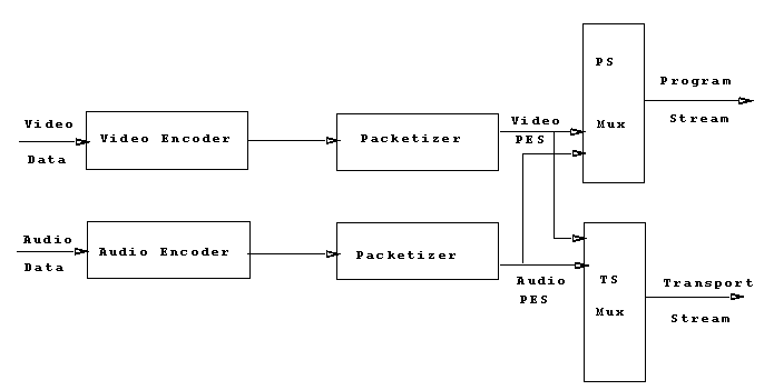 Τα συστήματα MPEG χρησιμοποιούνται για να κατευθύνουν συνδυασμένα κανάλια ενός ή περισσοτέρων σημάτων βίντεο και ήχου καθώς και την ροή άλλων δεδομένων, σε απλά ή πολλαπλά κανάλια ροής τα οποία είναι κατάλληλα για αποθήκευση ή για μετάδοση. Η εικόνα που ακολουθεί δείχνει μία απλουστευμένη άποψη του συστήματος ελέγχου MPEG.
